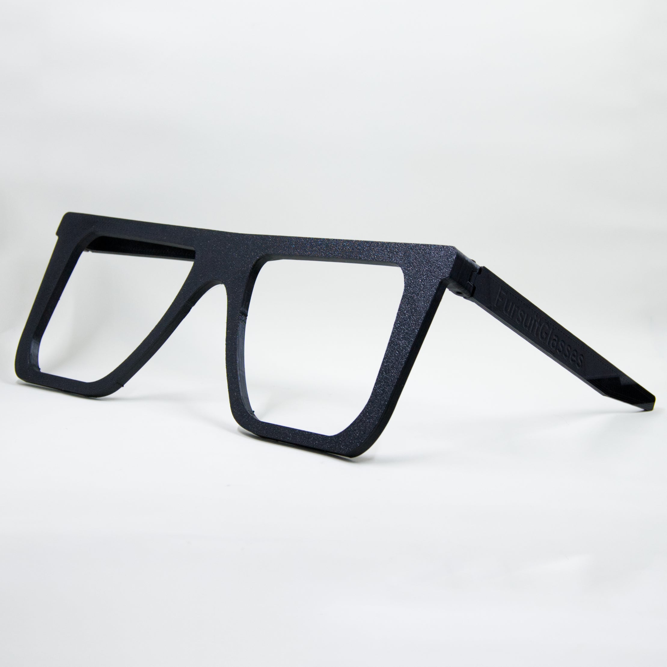 Glasses frames are now printed in PETG. This filament is more heat resistant and should be less susceptible to bending in hot environments. The arms are still printed in PLA.