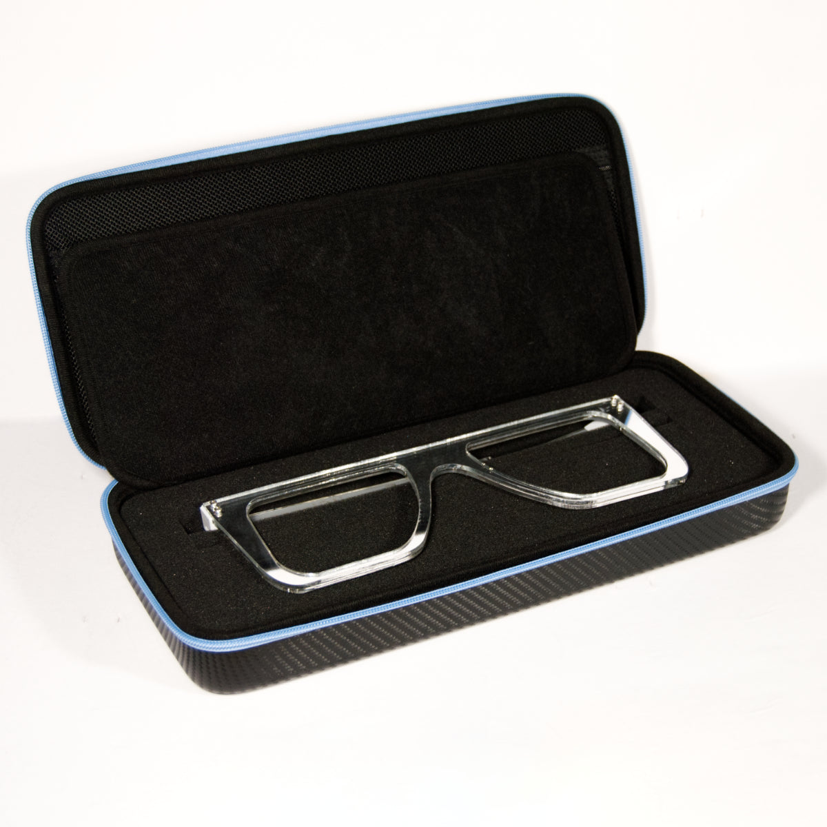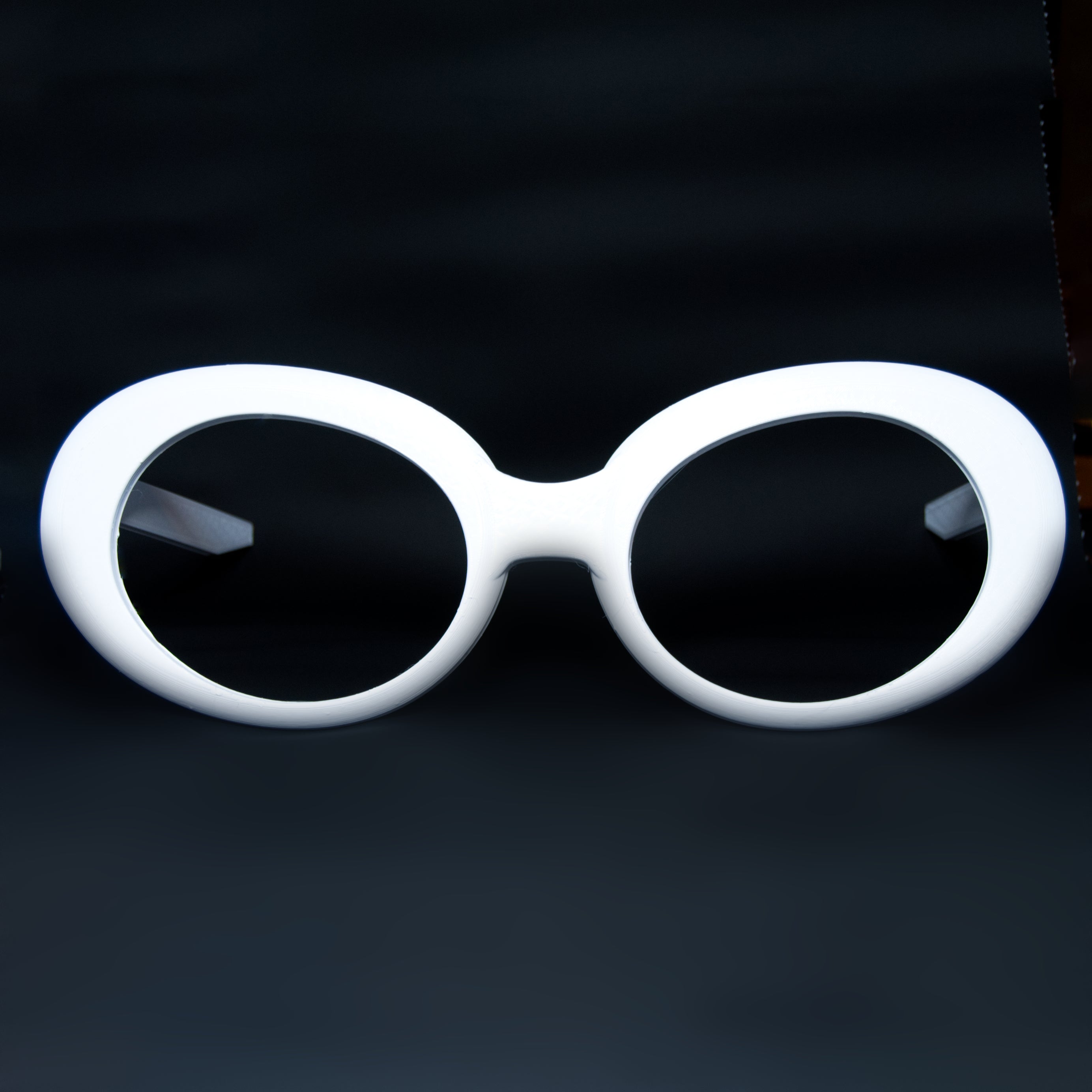The glasses feature attachment points for magnetic lenses. The lenses are laser cut out of 3mm acrylic and come in a variety of colors.