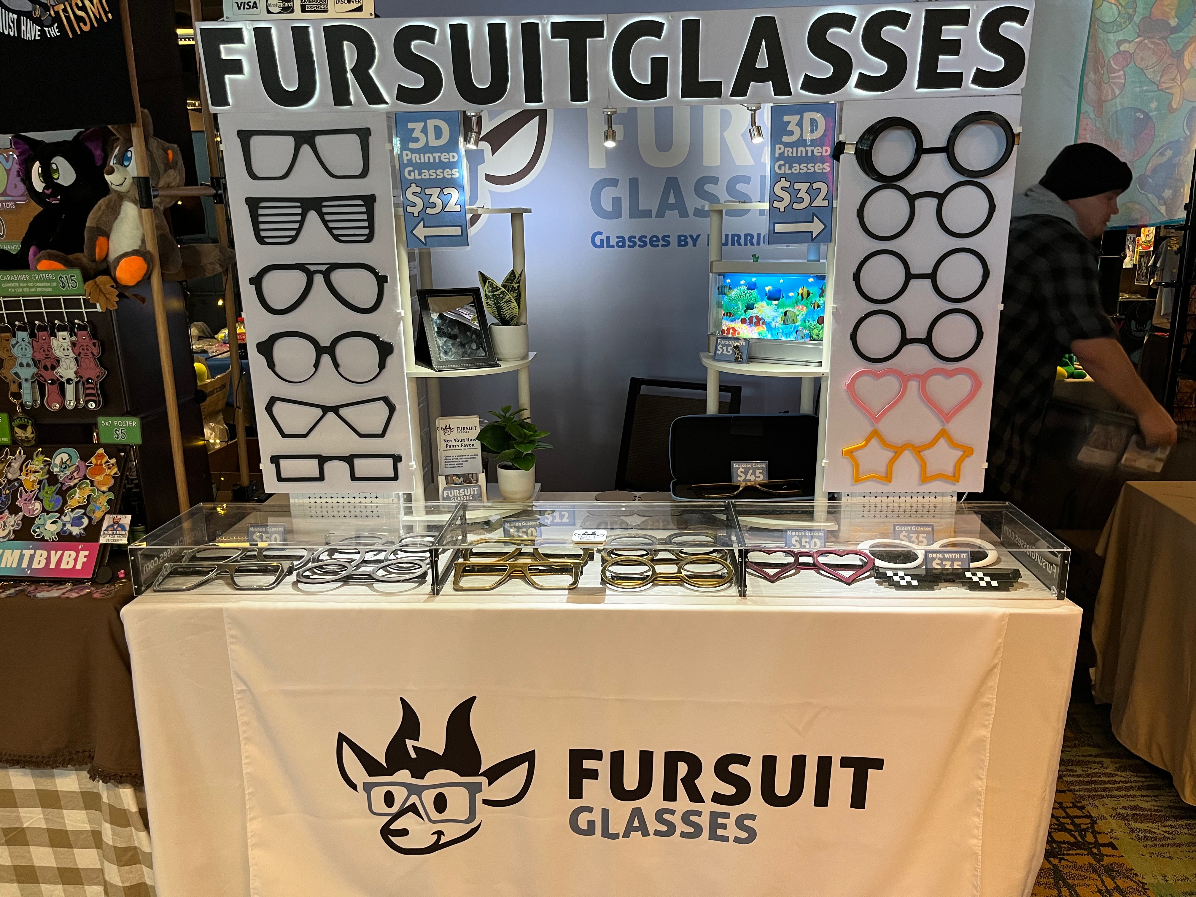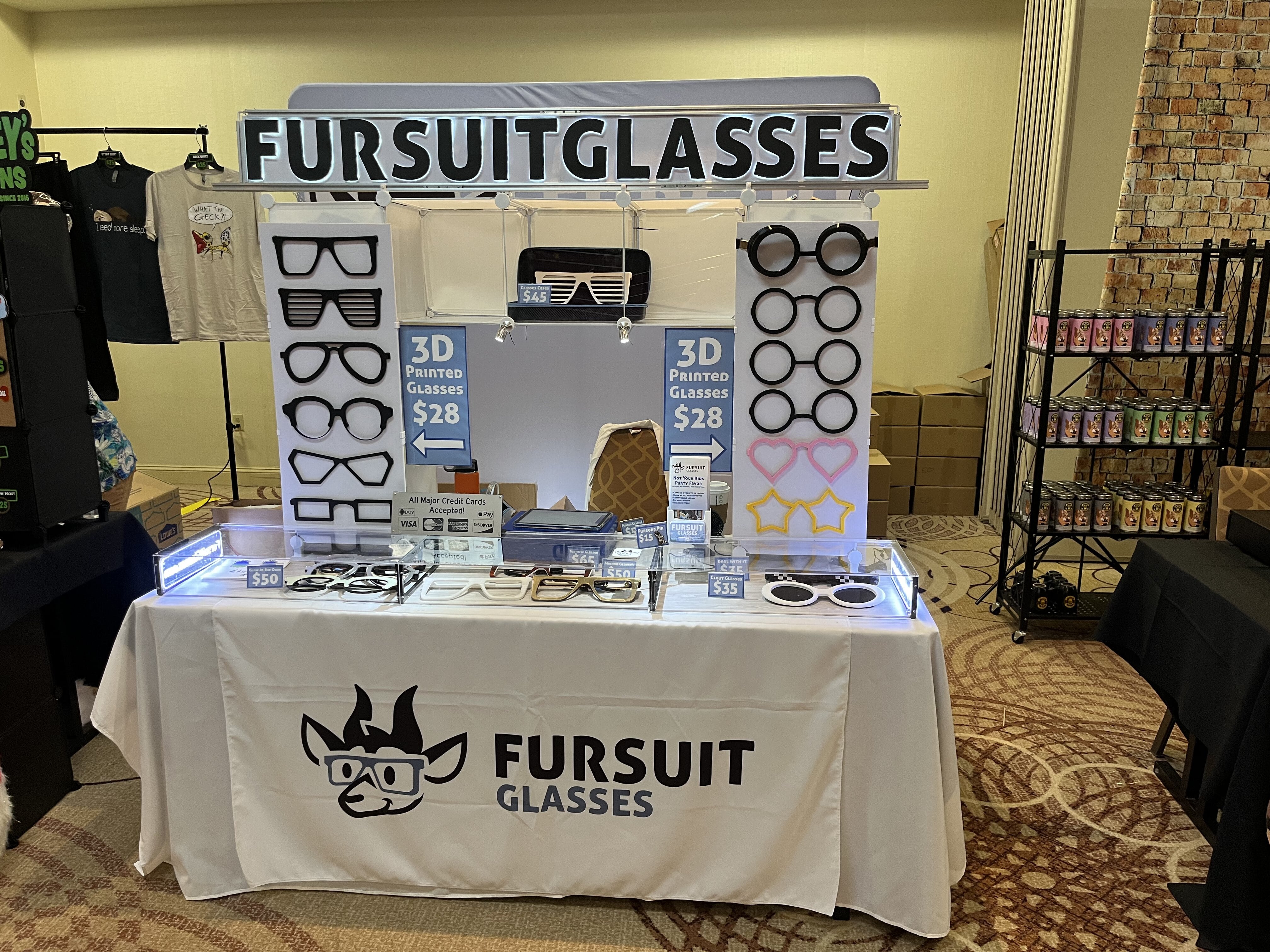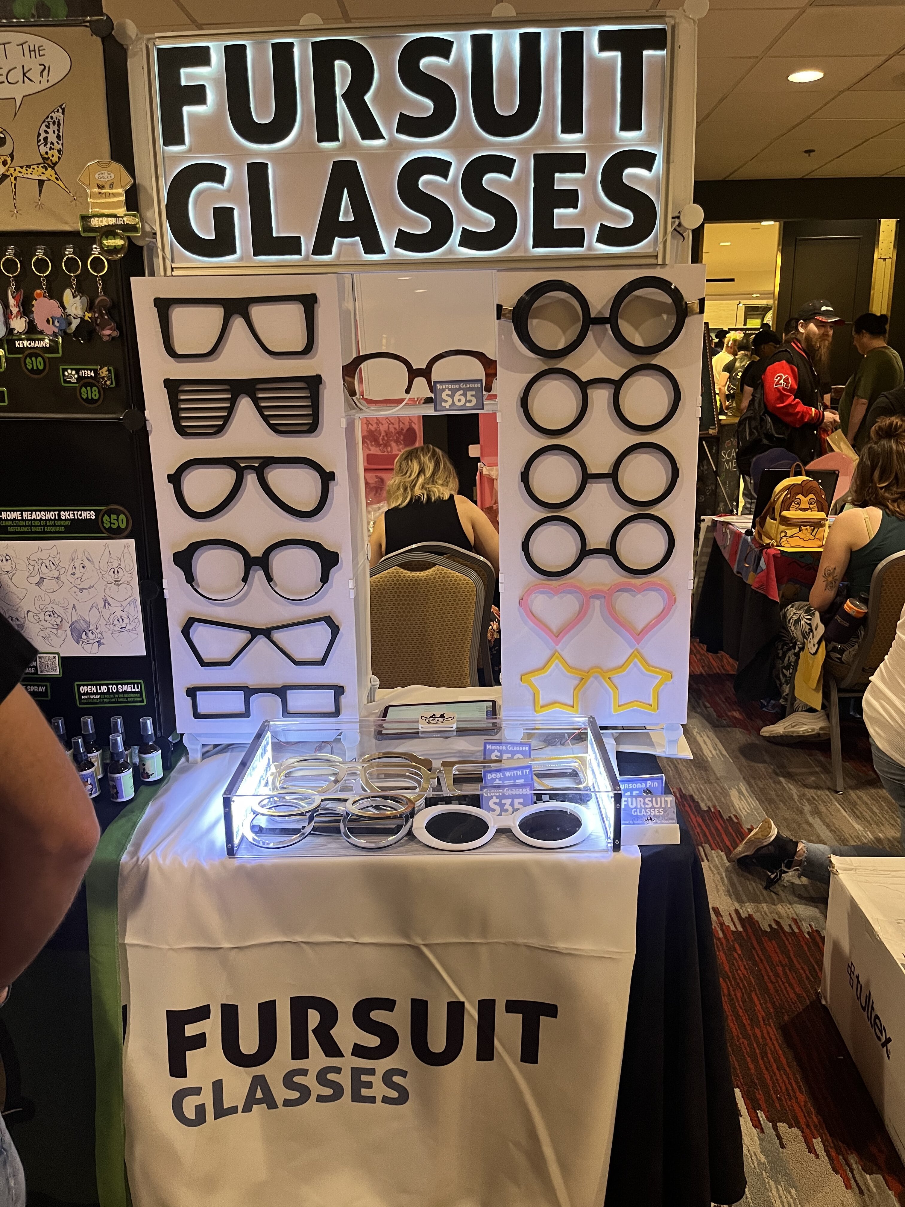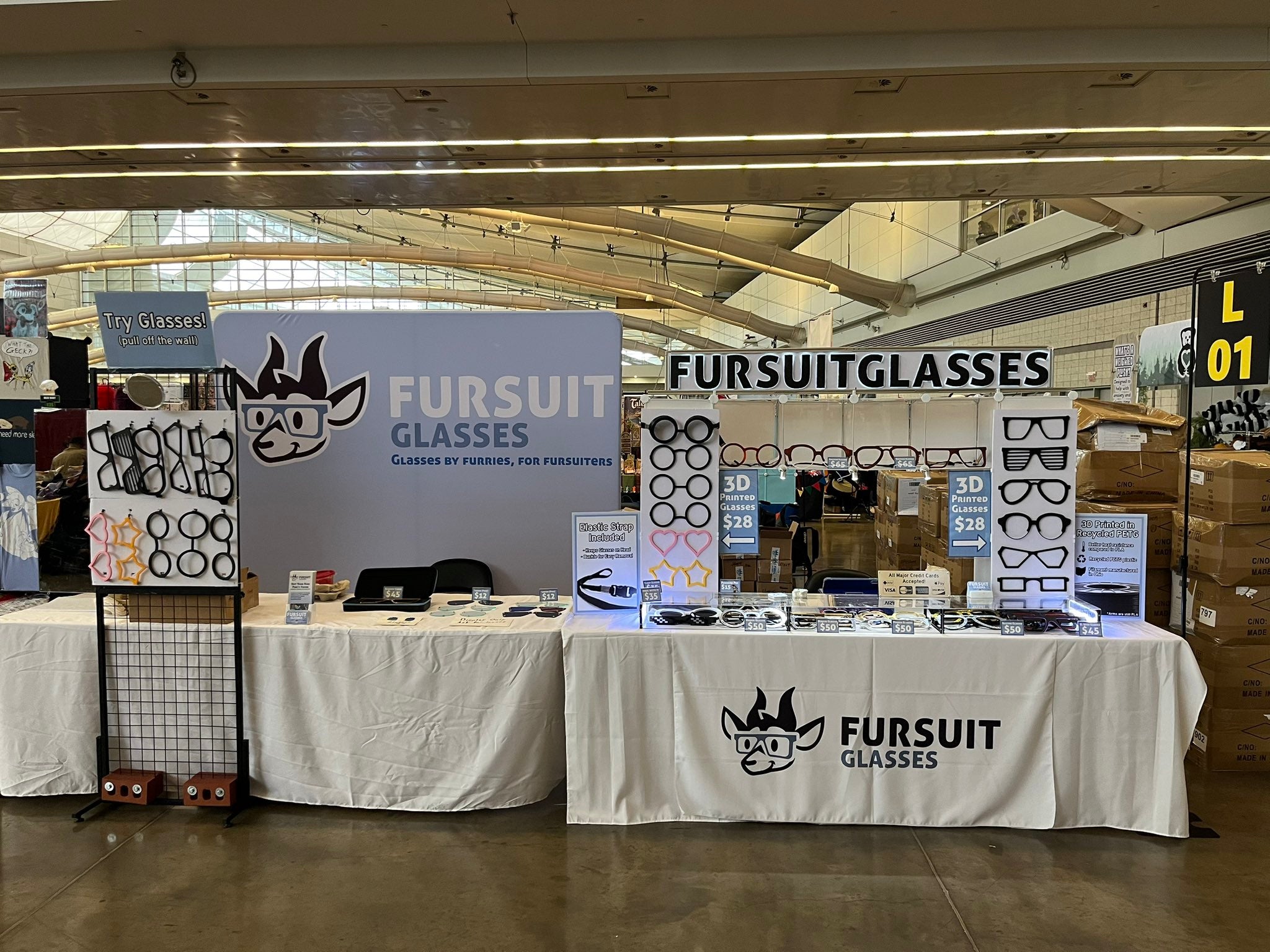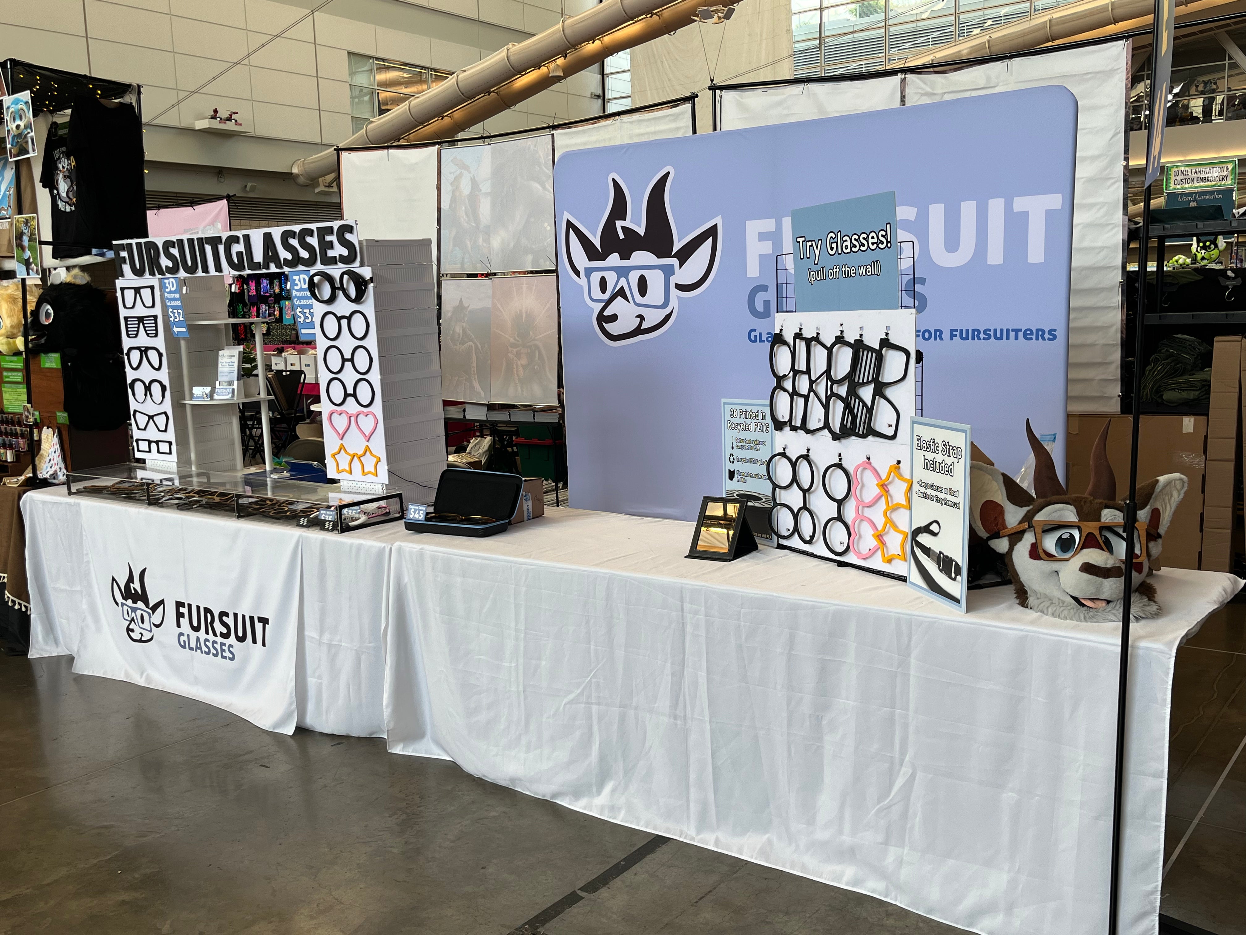 We do our best to create a booth experience like no other. Our booth is inspired from an optometrist office, with the traditional glasses displays and tidy welcoming atmosphere. We started in 2021, and we have since made improvements to get our booth and products to reflect the eye doctor experience.